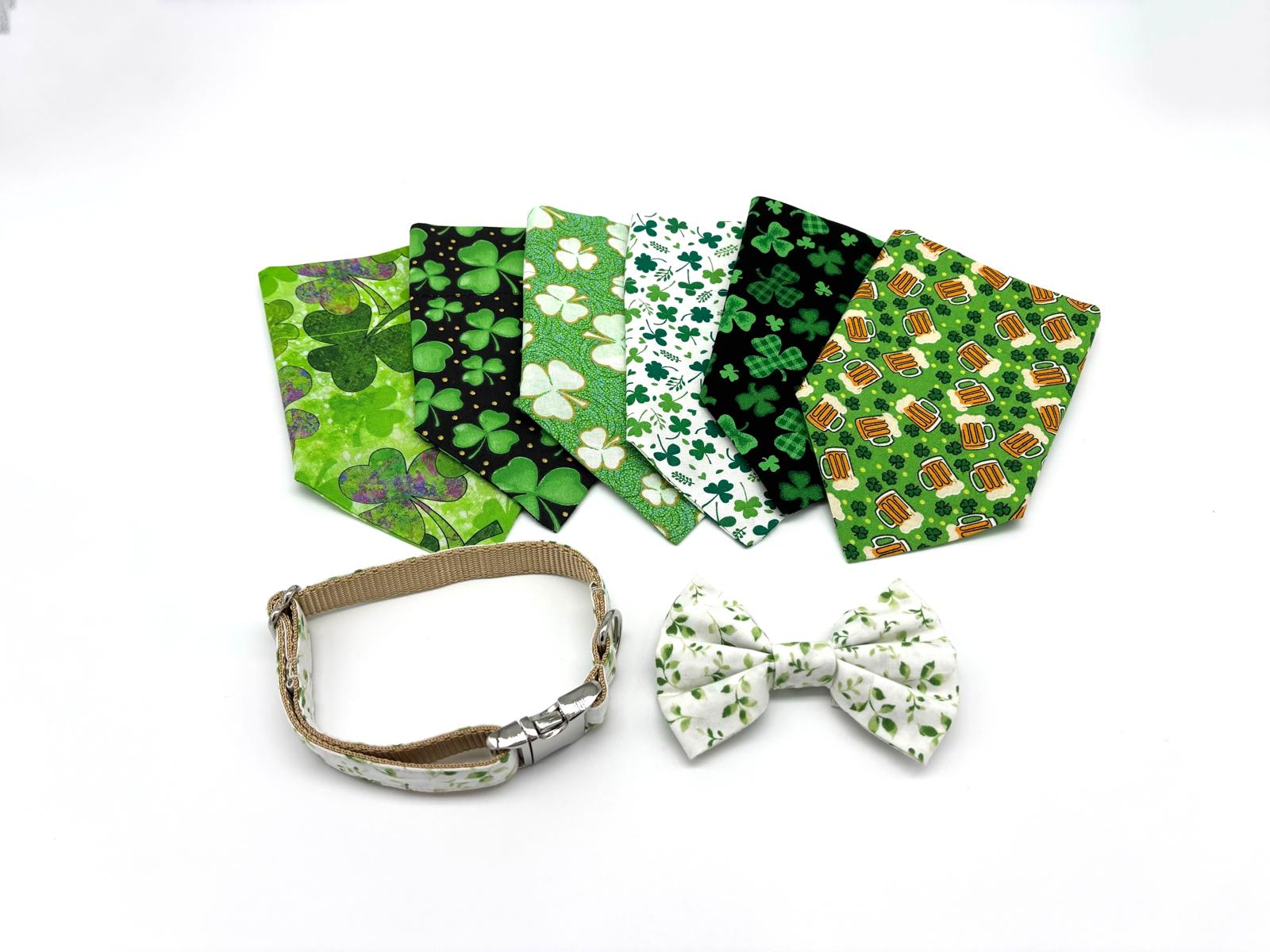 Celebrate the spirit of St. Patrick’s Day with your pup by exploring our festive collection! Thoughtfully designed to bring luck, cheer, and a touch of Irish magic, these adorable accessories will have your furry friend shining wherever they go. From shamrock-inspired bandanas to charming bowties and lucky green accents, this collection adds the perfect festive touch to your pup’s look.
